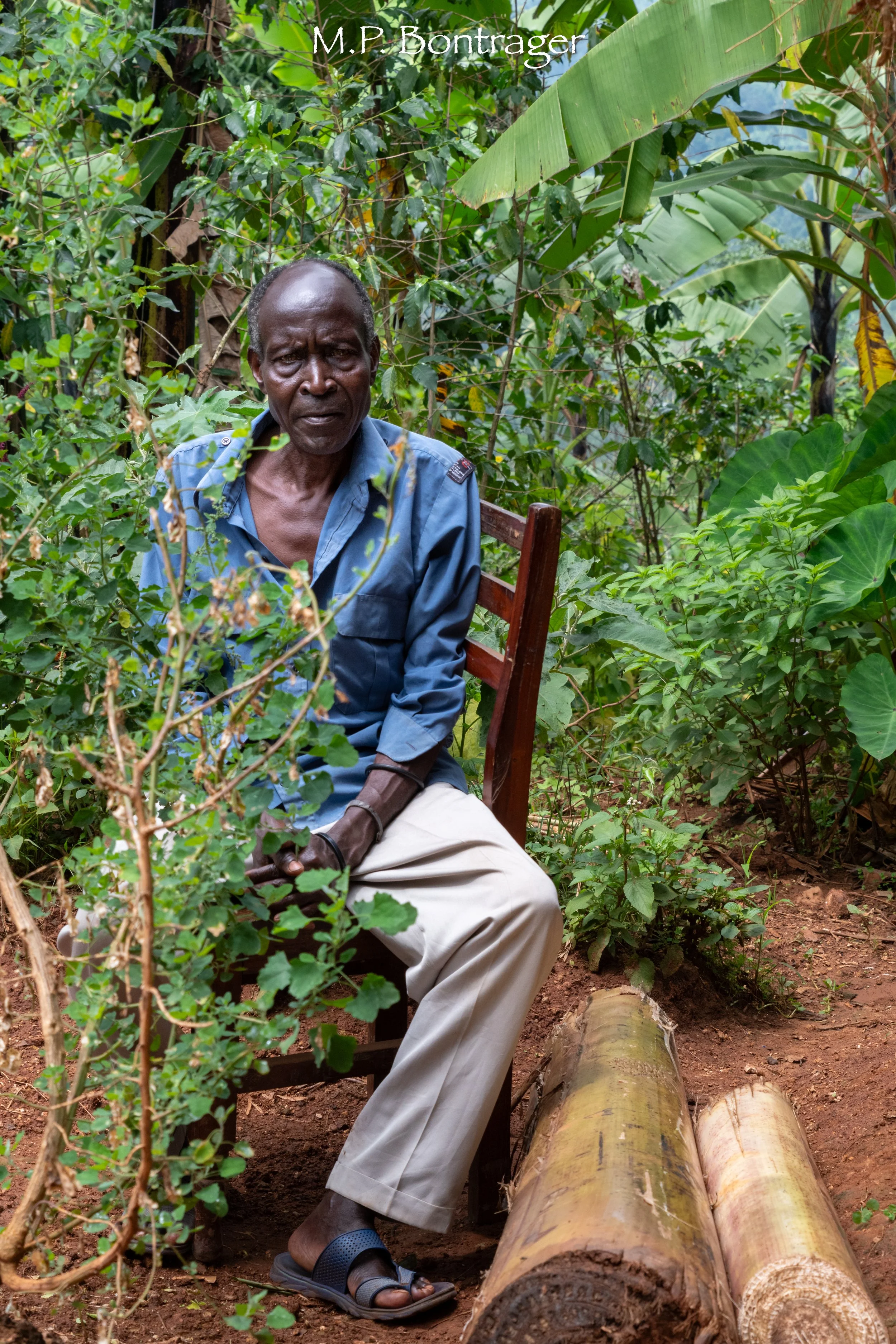 Their names are Joseph and Lona, and they graciously spend an hour with me answering my questions about their lifestyle. After a tour of their garden plot and their livestock shelters, Joseph shows me where his family gets their water, a 20 minute walk through small coffee tree farms. This public well is adjacent to Joseph and Lona’s church. There is a new primary school adjacent to the church that they need funding to establish. The school is a simple mud and wattle construction. Each small schoolroom has benches and a chalkboard. They educate over 100 children ranging from nursery school through primary school.
